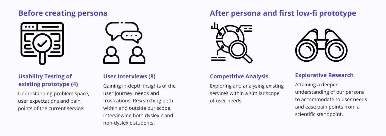 Goal: to test the current prototype and deliver an accessible redesign and map out a new target group, dyslexic users.