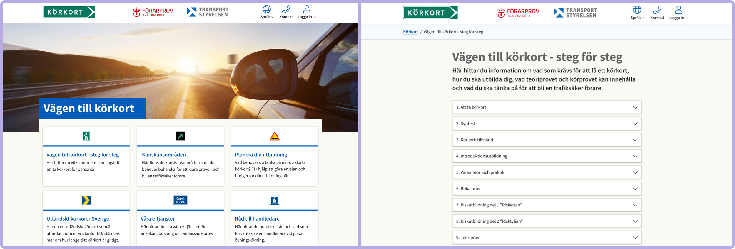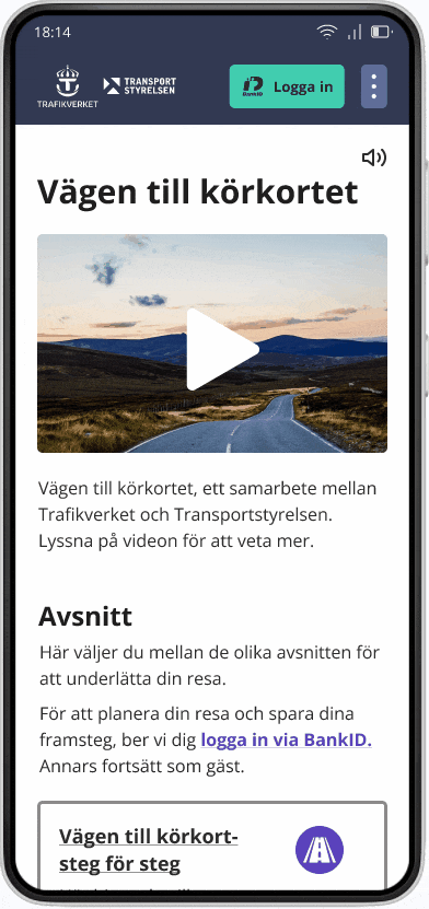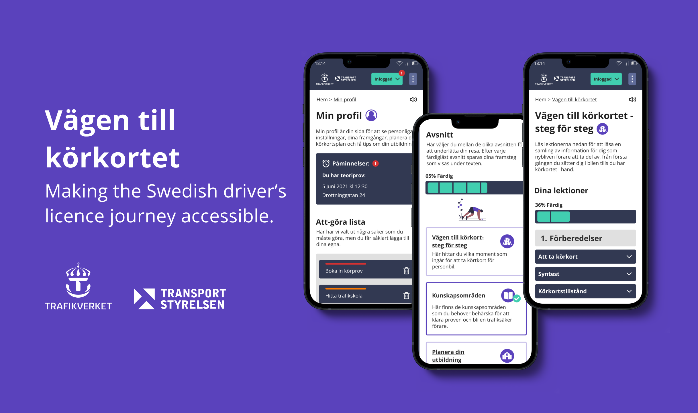 The platform initiative, Vägen till körkortet (en. The road to the driver’s licence), was a collaboration between the Swedish transport administration authorities, Transportstyrelsen and Trafikverket. They began to create a platform for both driver’s licence tutors and students, to guide them through the driver’s licence process.