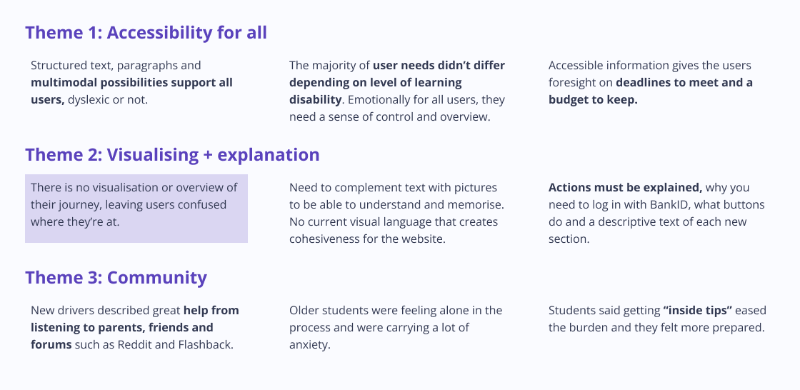 Getting to know and understand our users and after mentoring, the decision to change our scope from dyslexic tutors and students, to driving students overall, but with an accessible perspective.